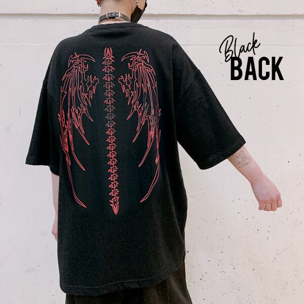 PSYCHE プシュケ DEVIL WING BONE 悪魔 羽根 骨 コットン ビッグ ゆったり Tシャツ Tワンピ
