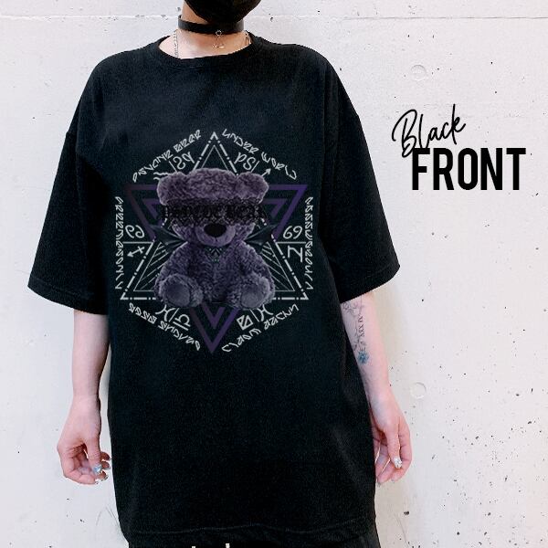 PSYCHE プシュケ CIRCLE BEAR フリーメーソン ベア 魔法陣 くま BLACK BIG TSHIRT コットン ビッグ ゆったり Tシャツ Tワンピ